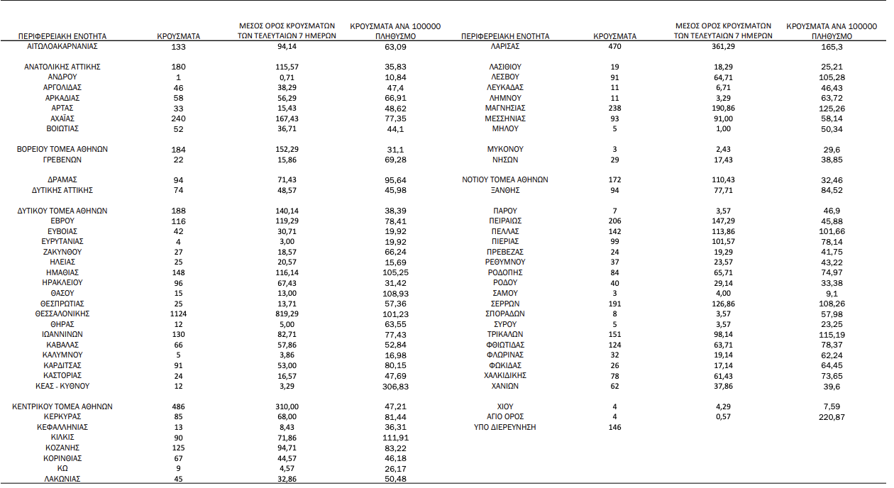 Κατανομή κρουσμάτων 05/11: Που εντοπίζονται