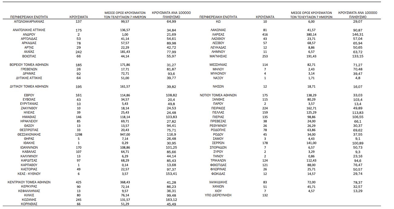 Κατανομή κρουσμάτων 08/11: Που εντοπίζονται