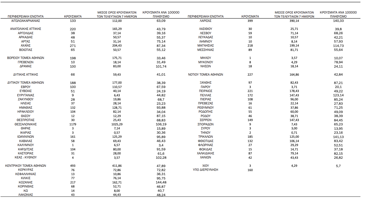 Κατανομή κρουσμάτων 10/11: Που εντοπίζονται