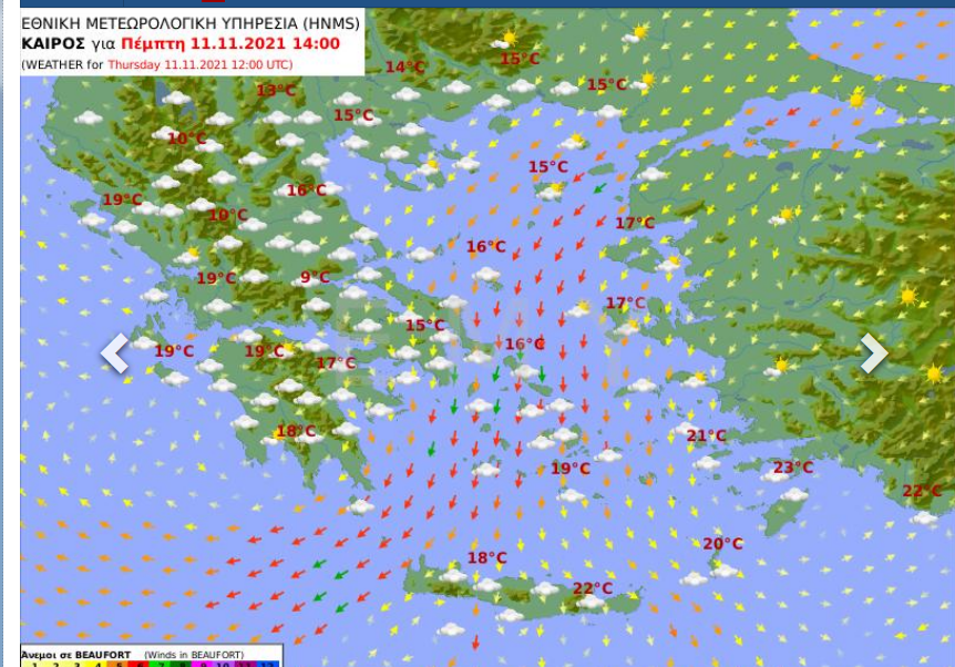 Καιρός: Νεφώσεις κατά διαστήματα αυξημένες κυρίως στα ανατολικά και βόρεια. Ανεμοι: Βόρειοι βορειοανατολικοί 5 με 7 και στα ανατολικά έως 8 μποφόρ. Θερμοκρασία: Από 10 έως 16 βαθμούς Κελσίου. Στα βόρεια 2 με 3 βαθμούς χαμηλότερη.