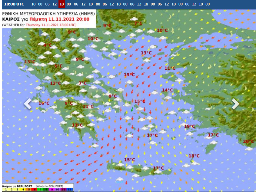 Καιρός: Στη δυτική Μακεδονία αυξημένες νεφώσεις. Στις υπόλοιπες περιοχές αραιές νεφώσεις, κατά διαστήματα πιο πυκνές. Ανεμοι: Ανατολικοί βορειοανατολικοί 3 με 4, στα ανατολικά 5 με 6 και στο Θρακικό τοπικά 7 μποφόρ. Θερμοκρασία: Από 04 έως 15 βαθμούς Κελσίου. Στη δυτική Μακεδονία 3 με 4 βαθμούς χαμηλότερη.