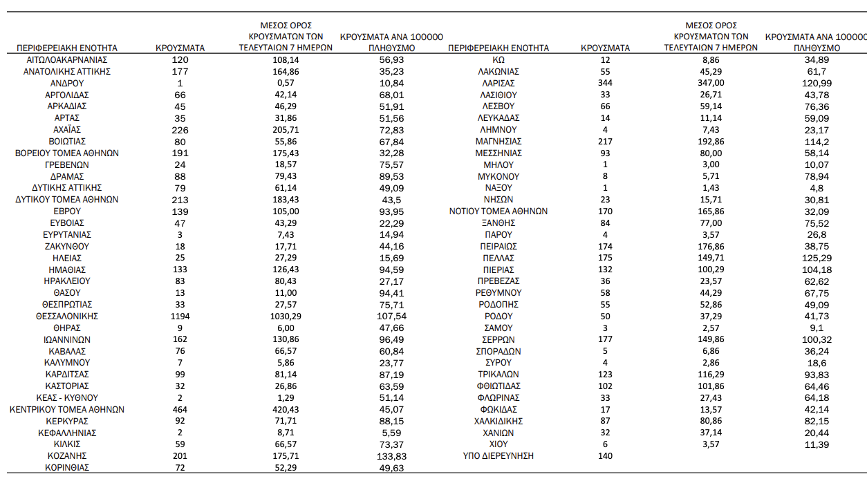 Οι περιφέρειες με διψήφια ή τριψήφια κρούσματα