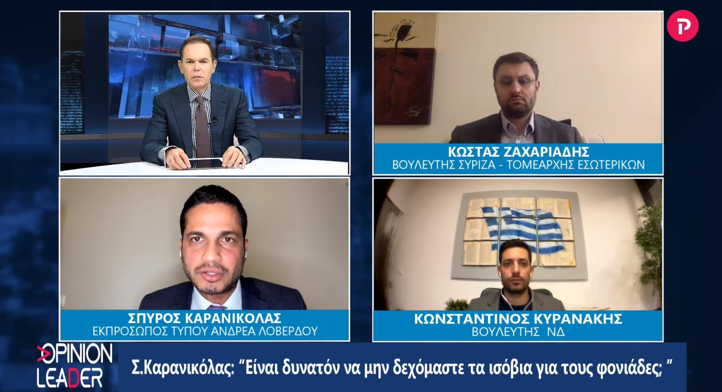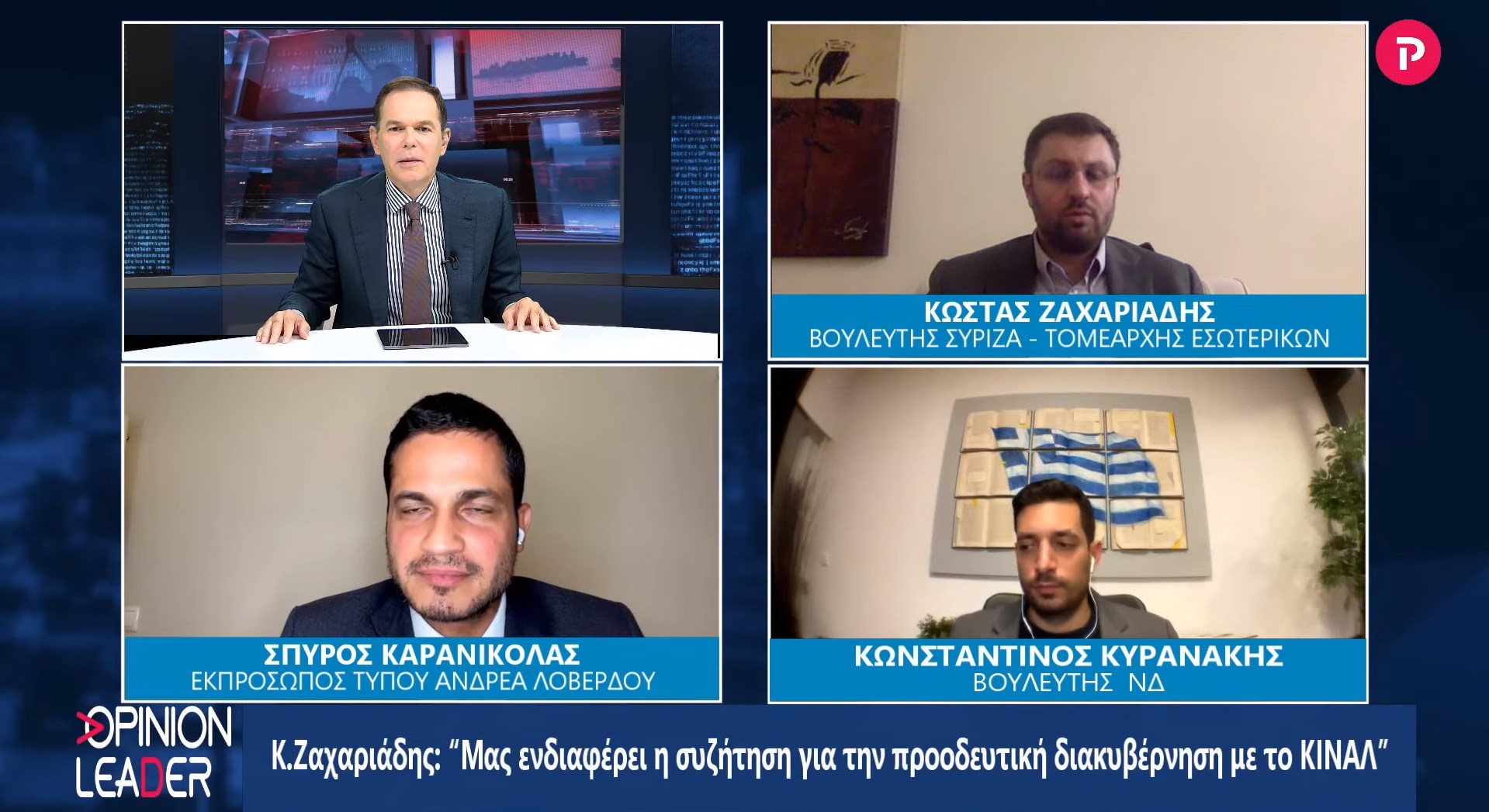 Ο βουλευτής της Νέας Δημοκρατίας Κώστας Κυρανάκης, ο βουλευτής του ΣΥΡΙΖΑ Κώστας Ζαχαριάδης και ο εκπρόσωπος τύπου του Ανδρέα Λοβέρδου, Σπύρος Καρανικόλας, μίλησαν στο pagenews.gr και την εκπομπή Opinion Leader με τον Δημήτρη Τάκη, όπου σχολίασαν τα τρέχοντα θέματα της επικαιρότητας, όπως ο νέος Ποινικός Κώδικας, το περιστατικό με την Ολλανδή δημοσιογράφο στο Μαξίμου και τις εκλογές του ΚΙΝΑΛ.
