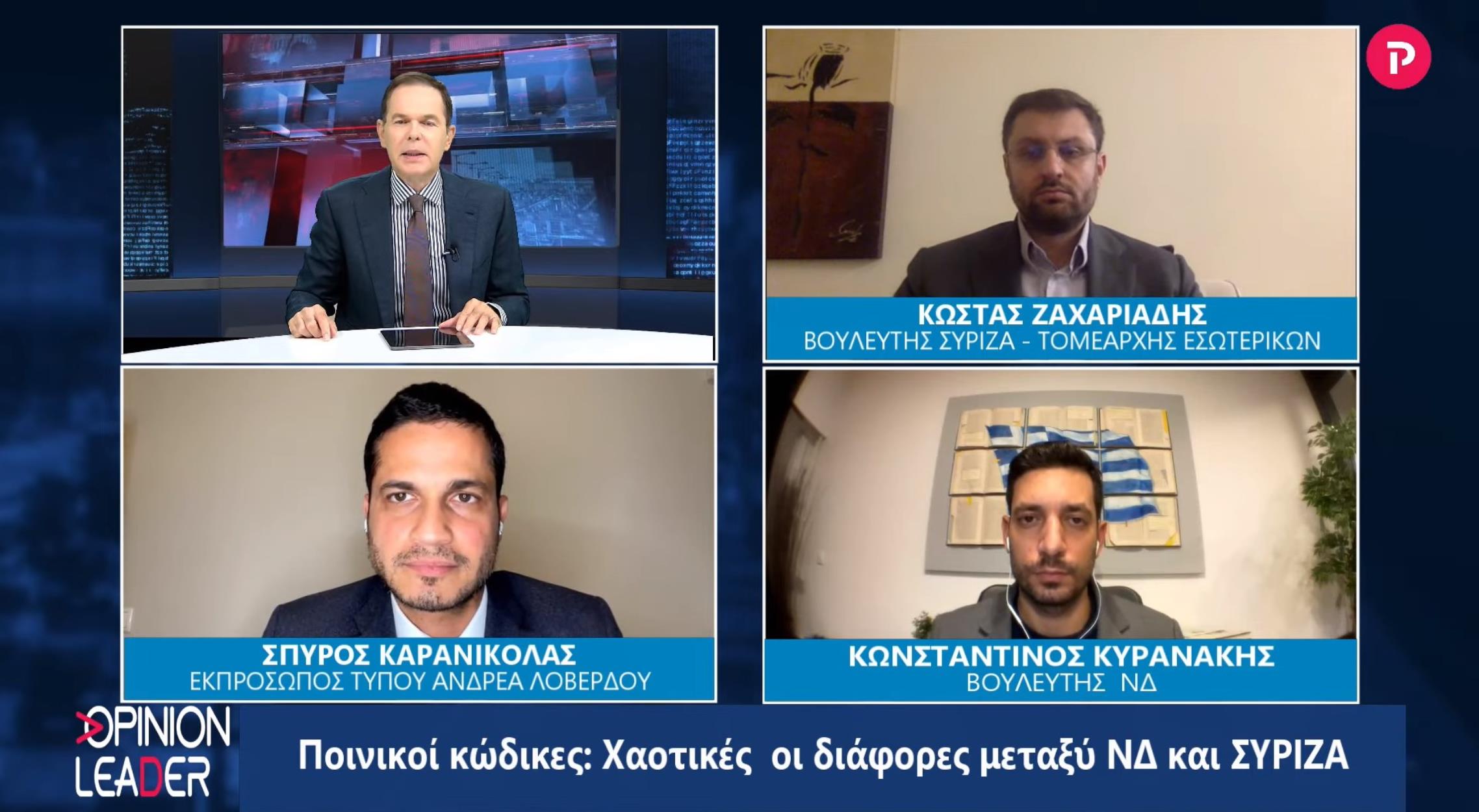 Ο βουλευτής της Νέας Δημοκρατίας Κώστας Κυρανάκης, ο βουλευτής του ΣΥΡΙΖΑ Κώστας Ζαχαριάδης και ο εκπρόσωπος τύπου του Ανδρέα Λοβέρδου, Σπύρος Καρανικόλας, μίλησαν στο pagenews.gr και την εκπομπή Opinion Leader με τον Δημήτρη Τάκη, όπου σχολίασαν τα τρέχοντα θέματα της επικαιρότητας, όπως ο νέος Ποινικός Κώδικας, το περιστατικό με την Ολλανδή δημοσιογράφο στο Μαξίμου και τις εκλογές του ΚΙΝΑΛ.