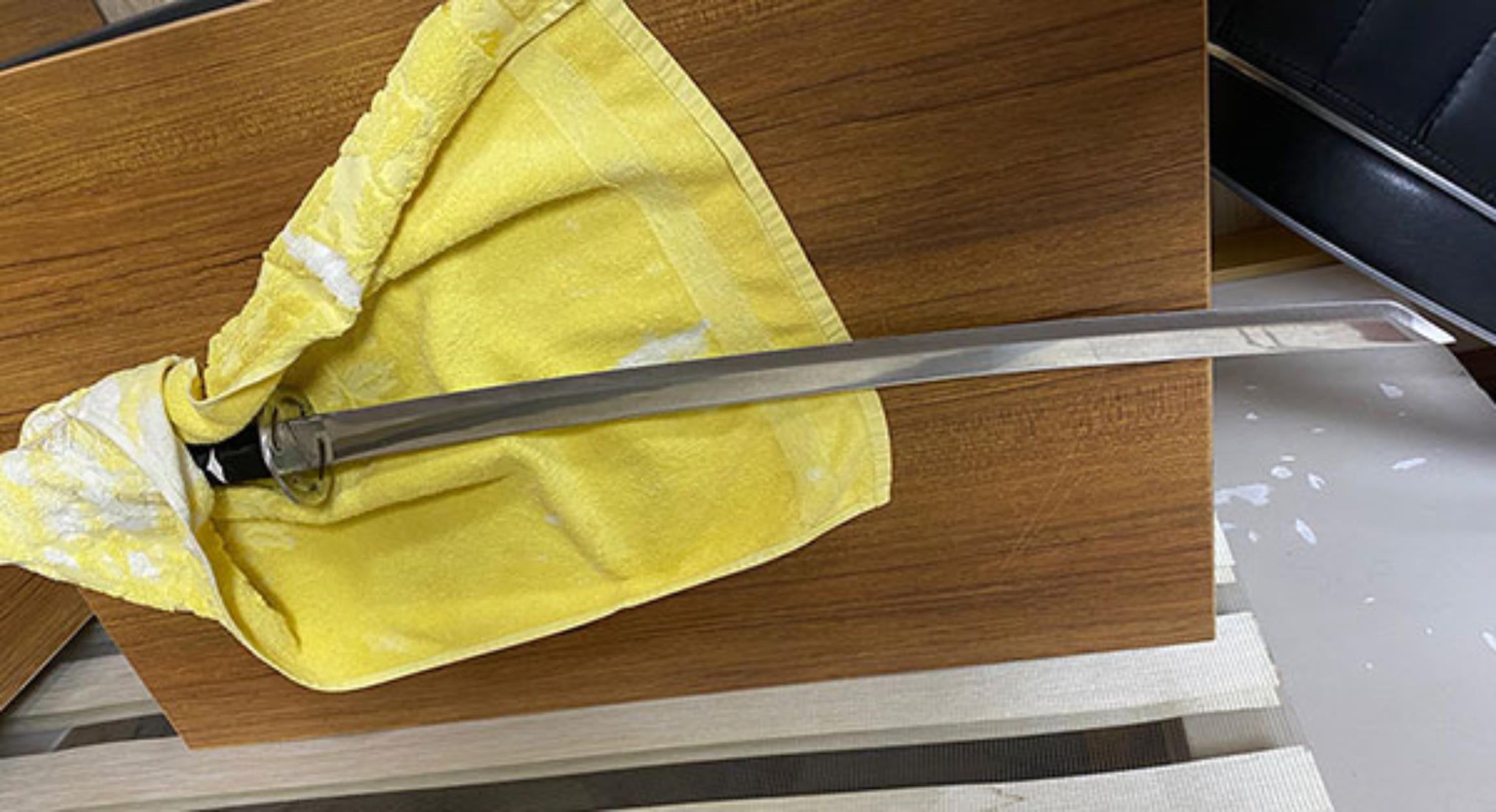 Στον χώρο βρέθηκαν επίσης και κατασχέθηκαν 15 ξίφη και μαχαίρια, ανάμεσά τους και το σπαθί σαμουράι που χρησιμοποιήθηκε στη δολοφονική επίθεση. Ο δράστης το είχε καθαρίσει και το είχε πλύνει στο μπάνιο. Οπως διαπιστώθηκε, είχε νοσηλευτεί στο παρελθόν για 17 ημέρες εξαιτίας της χρήσης ναρκωτικών και έλαβε ψυχολογική υποστήριξη για 5 χρόνια. Ωστόσο, δεν είχε συμβουλευτεί γιατρό τα τελευταία τρία χρόνια.