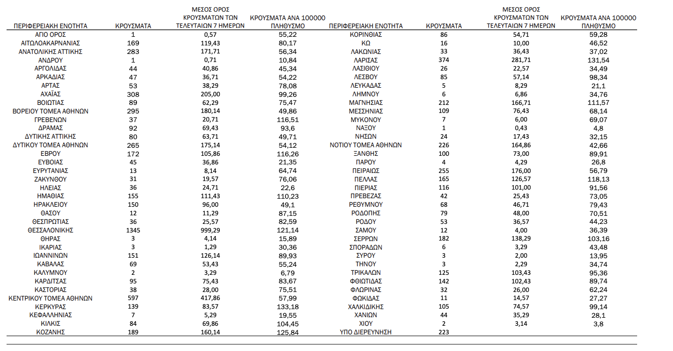 Οι περιφέρειες με διψήφια ή τριψήφια κρούσματα