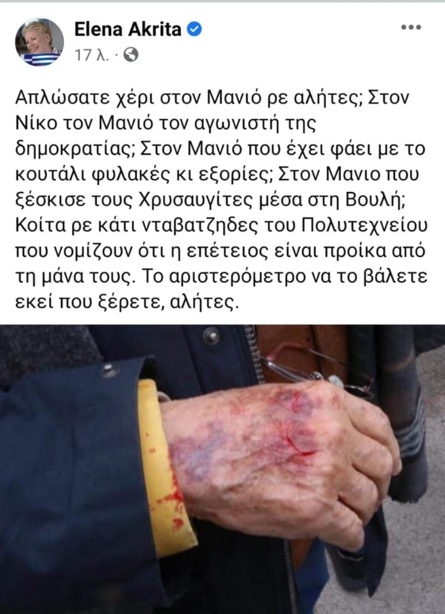 Οι διάδοχοι, αυτών που αρχικά υπονόμευσαν την εξέγερση, αυτών που ήταν συνομιλητές της χούντας, αυτών που θεωρούν ότι τα συνθήματα του Πολυτεχνείου για “ψωμί, παιδεία, ελευθερία” είναι επίκαιρα και νοηματοδοτούν τους αγώνες τους, αυτών που διακινούν τα ανιστόρητα “η χούντα δεν τελείωσε το 73” και σήμερα μας “κυβερνάει η χούντα του Μητσοτάκη”, αυτοί έκαναν πράξη και στον φετινό εορτασμό την αυταρέσκεια και τον βαρβαρισμό τους. Ξυλοφόρτωσαν τον σύντροφο τους Ν.Μ. γιατί τόλμησε να “παραβιάσει” τον “απολυταρχικό νόμο και τάξη” του Αριστερού παρανοικού μικρόκοσμου τους, καταθέτοντας στεφάνι. Η συνέχεια και ο πόλεμος μεταφέρθηκε στα social media. Διαμορφώθηκαν στρατόπεδα. Πήραν θέση οι οπαδοί. Και δημοσιοποιήθηκαν φετφάδες και απειλές. Η κοινοκτημοσύνη και οι συντροφικότητες πήγαν περίπατο. Αριστερής κοπής ανεμομαζώματα, διαβολοσκορπίσματα.Όπως και η ιδεολογία της.