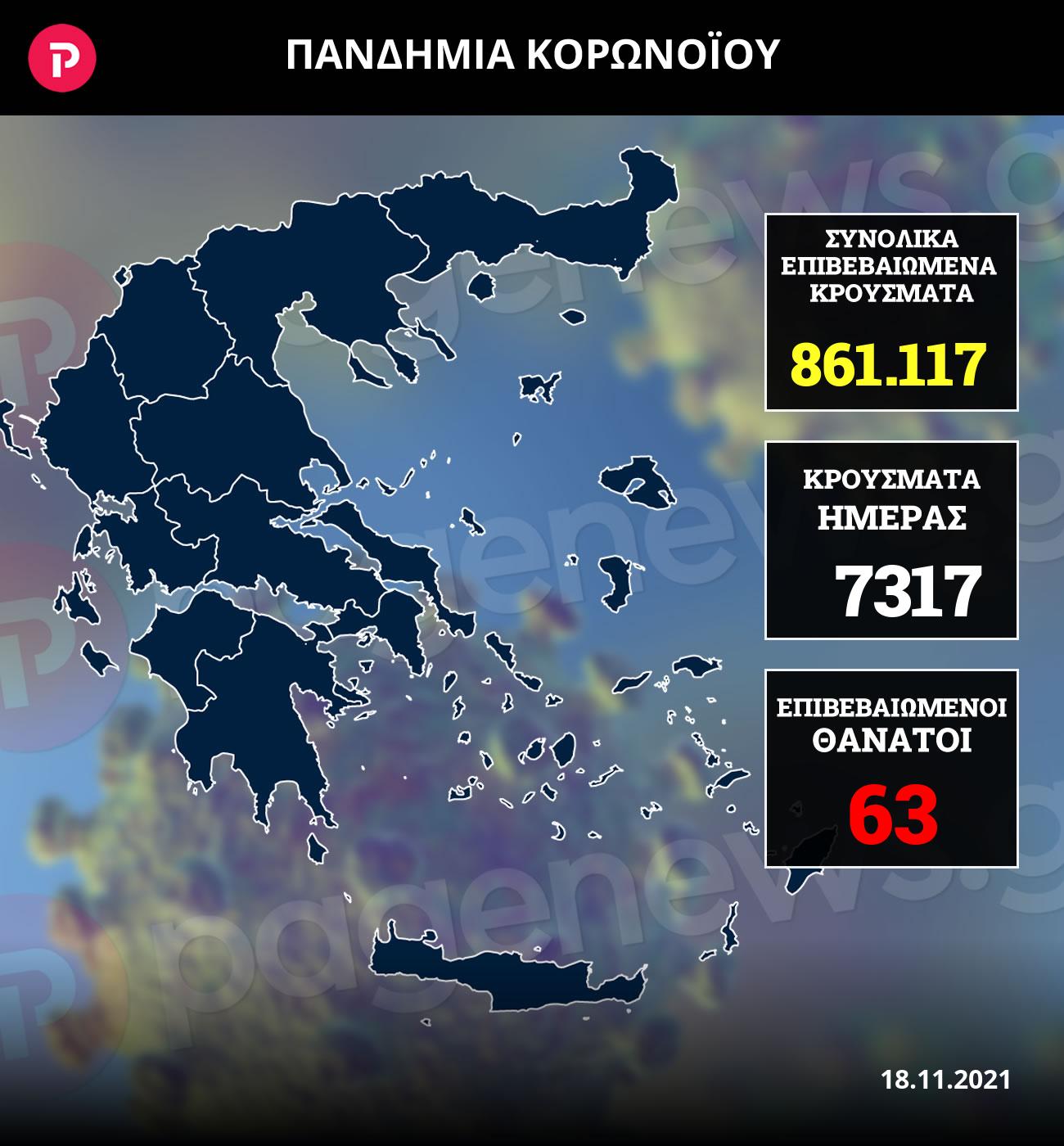 Κρούσματα σήμερα 18/11: 7.317 νέες λοιμώξεις