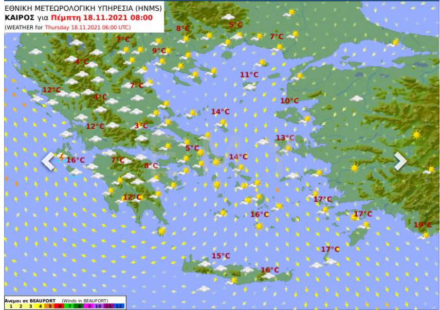 Καιρός σήμερα 18 Νοεμβρίου: H πρόγνωση για την Πέμπτη