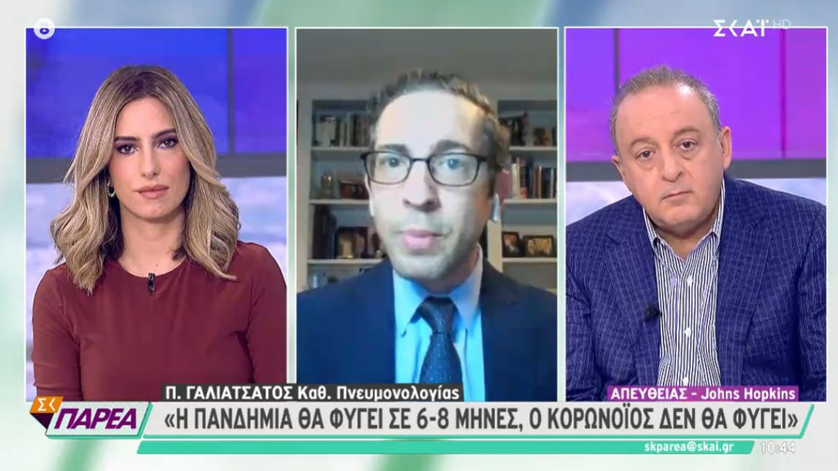 Την αισιοδοξία του ότι η πανδημία σε 6-8 μήνες θα έχει λάβει τέλος, εξέφρασε μιλώντας στο ΣΚΑΪ ο Έλληνας καθηγητής Πνευμονολογίας στο πανεπιστήμιο John Hopkins, Παναγιώτης Γαλιατσάτος.