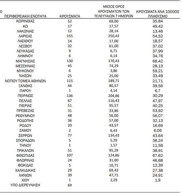 Κατανομή κρουσμάτων 21/11: Που εντοπίζονται